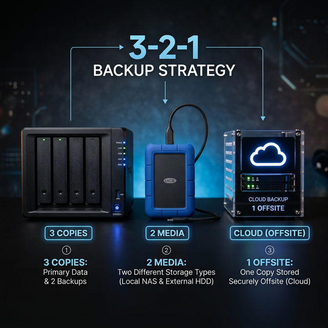 Die 3-2-1-Backup-Regel schützt deine Daten vor Verlust. So setzt du sie im Homelab mit NAS, Cloud und Automatisierung um.